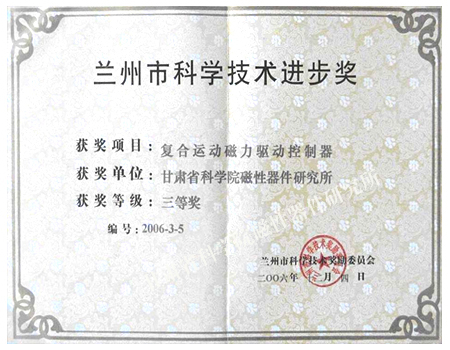 甘肅省科學(xué)技術(shù)進(jìn)步證書